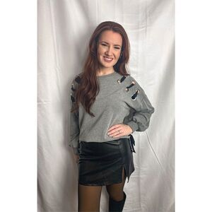 Project Runway top || size small || very oversized and super soft with stretch || like new condition, I never wore it || cute ties on both sides of the hem ||