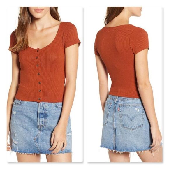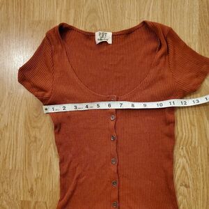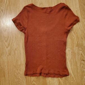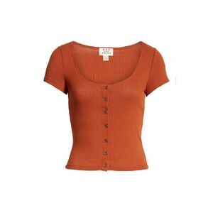 PST Project Social T Button Front Ribbed Tee sz Small in Rust.