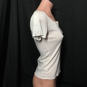 Subtle ribbing adds soft texture to this split-neck, short-sleeve tee.