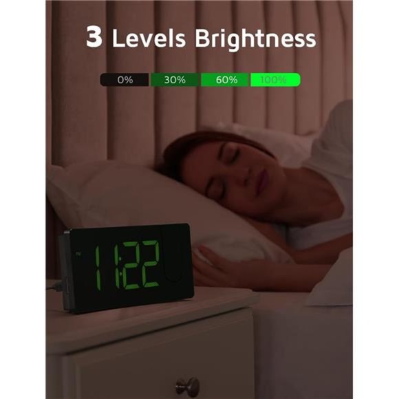 🧿LARGE LED DISPLAY & 3 BRIGHTNESS LEVELS -- The curved screen with 3.4*1.7inch large digits is easy to read in the dark, even when you are not quite awake or without your glasses. With 3 adjustable levels, you can dial down it to a level that is readable in the daytime but unobtrusive at night. It allows you to separately adjust the brightness of the face display and the projection display.