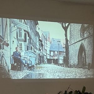 projector with HDMI, audio aux and adapter for USB c (no remote, no really need it) has a good loud speaker