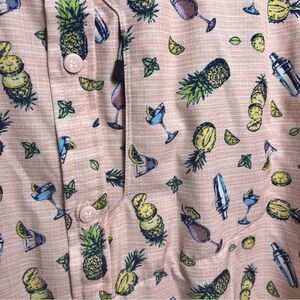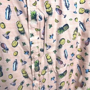 Projek Raw Button Down Mens Large Shirt from the Sunset Lounge Cocktail Party Series. Shirt is in immaculate condition with zero rips, snags, or discoloration. Material is extremely lightweight, breathable and comfortable and would be perfect for gold, boating, vacation or any occasion. Short has hidden front chest pocket if you look closely in pictures.