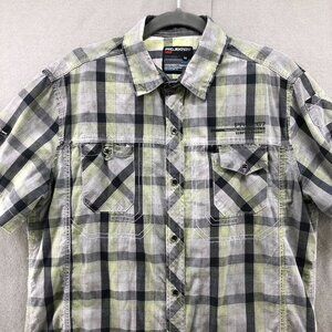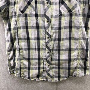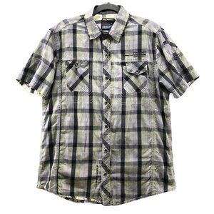 Projek Raw Gray Yellow Plaid Button Up Shirt Mens Medium M Short Sleeve