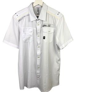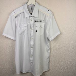Projek Raw Shirt Mens Large White Button Front White Short Sleeve Outdoor Pocket