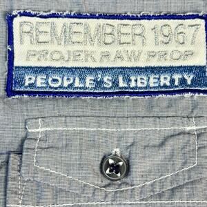 Projek Raw Shirt Mens sz M Button Up Short Sleeve Blue Embroidered Remember 1967