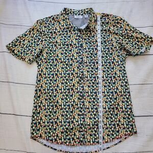 Projek Raw Size M Tropical Drink Print Short Sleeve Button Up Vacation Shirt