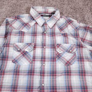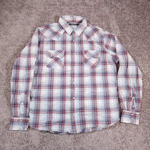 Projek Raw Western Snap Shirt Mens Size Large Long Sleeve Plaid Pockets
