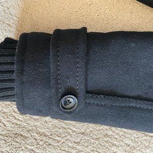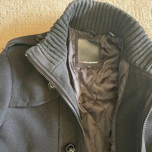 Stylish, warm and rare, this insulated peacoat is a blend of 40% wool, 38% polyester plus nylon and acrylique. SIze large in like-new condition.