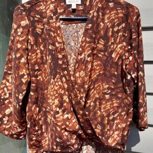 Prologue Brown Wrap Blouse with Relaxed Fit XS