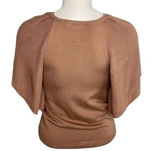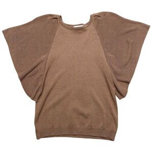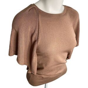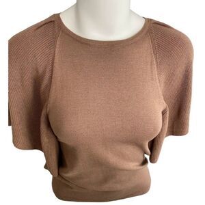 Prologue Brown Mocha Short Flutter Sleeve Crewneck Sweater Top sz XS