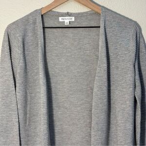 Prologue Longline Open Front Cardigan Women’s XS Soft Gray Textured Knitwear.