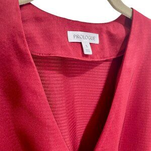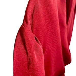 Prologue Red Faux Wrap Baby Doll Satin Blouse Tie-back Top Long Sleeve; Small