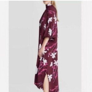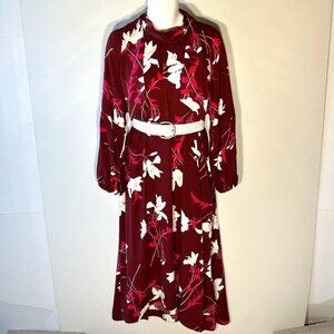 Prologue SZ XXL Wine Floral Tie Neck Dress Career Modern Abstract Interview Travel