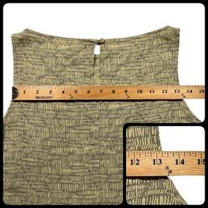 Simple comfy sleeveless dress from Prologue in dash print-yellow & cream. Sleeveless bodice, dropped waist, swingy godet skirt, keyhole button closure in back, high low hemline & four slits hit below knee. Has a retro 1920's style vibe. 100% Polyester-Machine Washable. Stock photo shown for fit. Due to light & screen variations, colors may vary slightly from the images