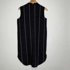 Prologue charcoal gray shirt dress with white and black window pane plaid pattern. Lightweight, loose-fitting. Good for business casual or every day wear.