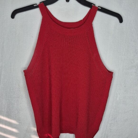 Chic and comfortable red sleeveless knit top. Perfect for casual outings or layering.