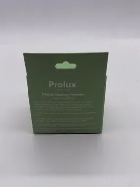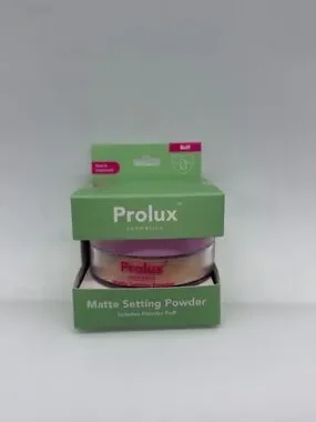 Prolux matte setting powder in beige shade. Includes powder puff. Lightweight, natural finish. Easy application for long-lasting mattified skin.