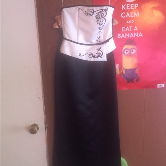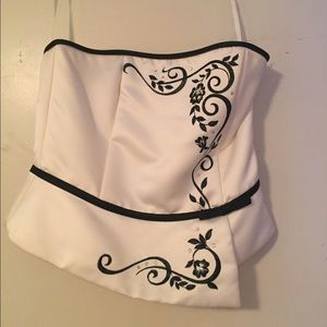 Two piece black and white strapless prom dress. Comes with black shawl.