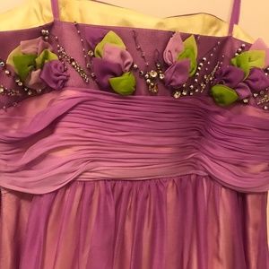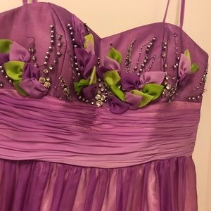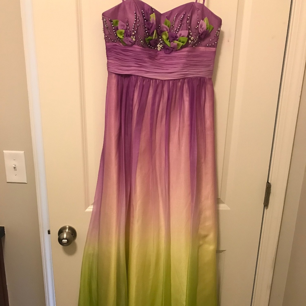 Floor-length, strapless lavendar faded to light green prom dress with beading/flowering top - perfect condition - size 7/8.