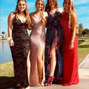 My favorite dress I’ve worn the sparkle and the slit in left leg is beautiful I had many compliments on it and there are really pretty pearls around waist!