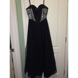 Black & Sequenced Prom dress, Size 2 originally; Size 0 w/ alterations, Only worn once. 55" in length.