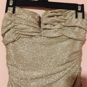Simple but Elegant, it's comfortable, strapless and a silvery Champagne color. Used once in great condition, practically new.