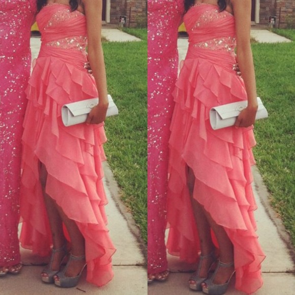 Prom Dress , Peachy Pink , Shiny Details Up Top, Very Cute , Size 4