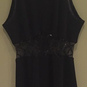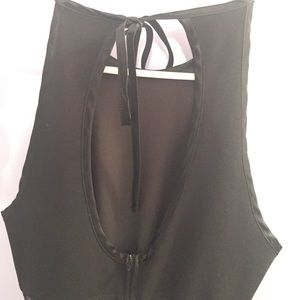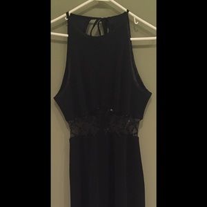 Unused Prom Dress with mesh mid-drift. Halter cut on top. Peep-hole back.