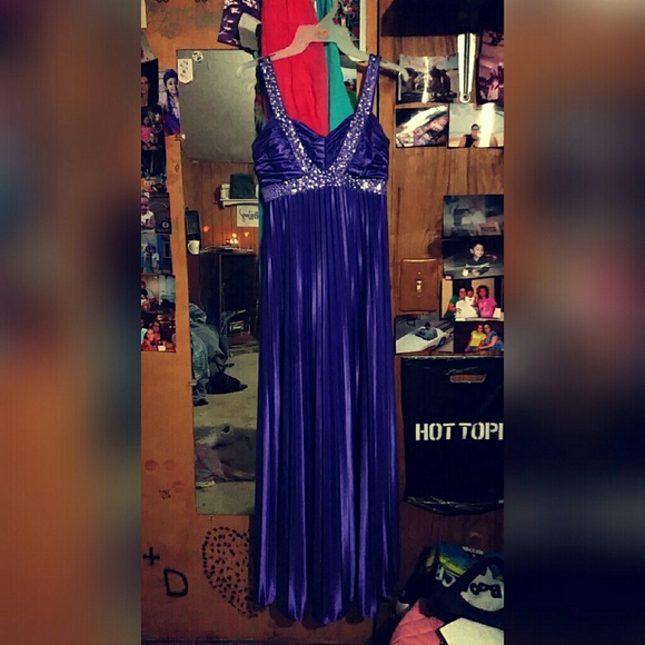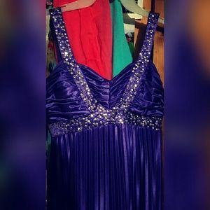 Purple Prom Dress, looks blue in the flash but really is purple like the last picture. No sequins missing. Pleated. You have to be careful with the zipper though. Super cute!