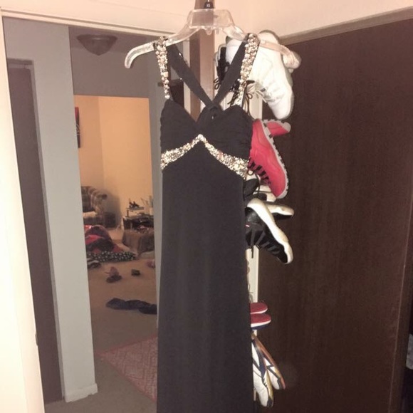 Super slick all black, back out prom dress. I did have it hemmed bc my heels were like 5.5 inches this year. So it will be perfect for 5'2-5'5.