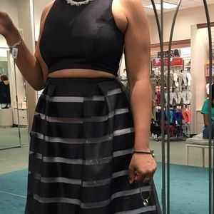 It has been tried on and worn once. Very comfortable and elegant 2 piece dress, it is true to size. Looking for best offer or possible trade!!