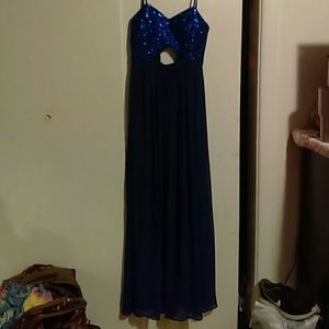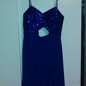 Midnight blue floor length spaghetti strap dress. Sparkly top half with midriff cut out. Super cute. Worn once. Size 3/4 (S)