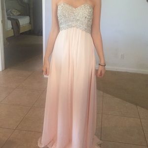 Diamond covered top long peach colored prom dress (offer me price)