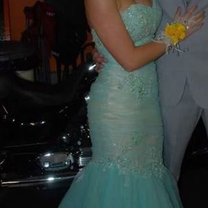 Mermaid style prom dress worn once, in perfect condition. Tag says size 6, but fits more as a 2/4. Zip up back.