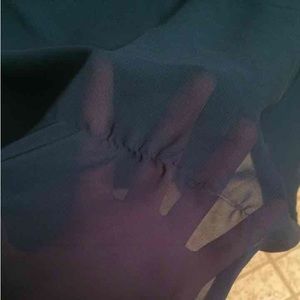 Teal and white / silver prom dress. Lace detail on top. was custom sized. Im normally a size 8 or 10 dress, (36D bust) but this is big on me in the bust so it may fit a size large depending on where you're bigger. Two layers on the skirt, the top being chiffon. Only worn once. I'm 5'5 and there's like 3 inches that drag. The third pic is a little mark about 4 inches on the very bottom of the chiffon layer in the back. Some fraying on the under layer, not noticeable when worn since it's covered.