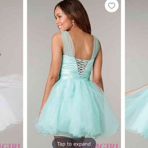 Never Worn | Exact dress in first picture, just bought it in silver | Adjustable back | Comes w/ shoulder scarf | From Promgirl.com for $100 | I bought it for my schools Junior prom but ended up not going