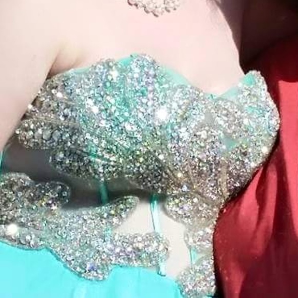 Beautiful Blue Prom Dress Lots of bling. does cover the boobs i used lots of boob tape. Only wore one time.