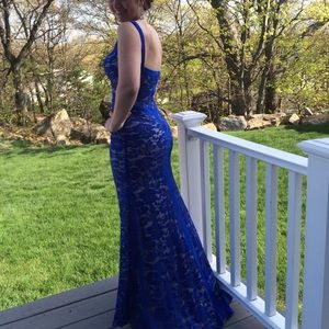 Blue lace, is so comfortable and able to dance in and has a nice slimming fit. Only worn once.