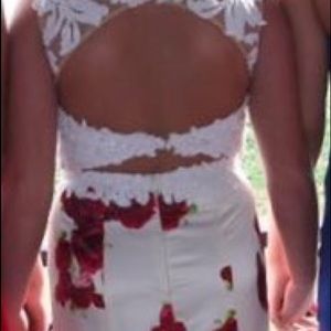 Gorgeous 2 piece prom dress, worn once...altered to fit 5'2 with 4 inch heals. Has not been dry cleaned, in great shape!