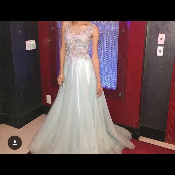 It's like a light mint blue. See through top with the embellishments. Only been worn once. I'm willing to negotiate prices as well!!