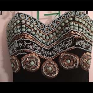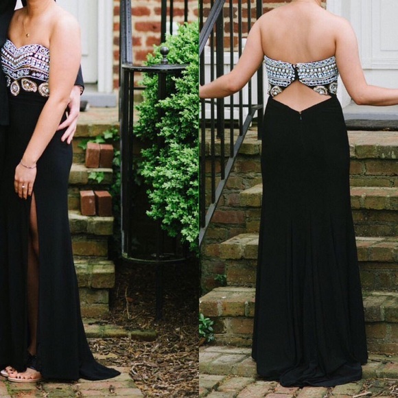 Selling my prom dress! It has only been worn once and is in great condition. Smoke free house and has been kept in a dress cover to keep it dust and dirt free. It has teal and gold beading at the top in a very elegant manner. The rest of the dress is black with a small opening on the lower back! don’t forget to bundle and save!💥💰 (all prices negotiable)