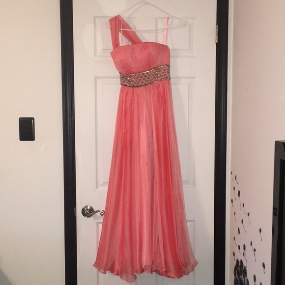 Adorable Prom Dress from Wow! Proms and Pageant Dresses. Worn once for a choir concert. Added one shoulder strap but can be worn strapless. A few loose beads that can easily be stitched back on. Hemmed.
