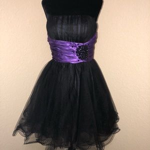 Sequined Tulle Black & Purple Dress! Filter looks pink/purple but Dress is Black & purple & has black sequined detail! It’s beautiful! We paid $250 & it was worn once but open to offers! 😍😍