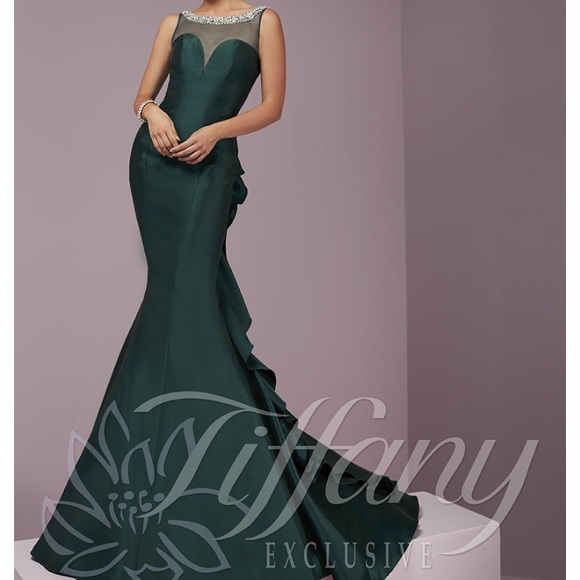 I Love this dress! It has only been worn once, and needs a new home! I bought this from Dimitra Designs. It is a Tiffany Designs style number 46083 in Hunter Green. This dress has been cleaned professionally and is in perfect condition!! Will work with price!