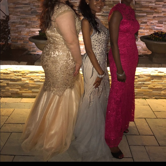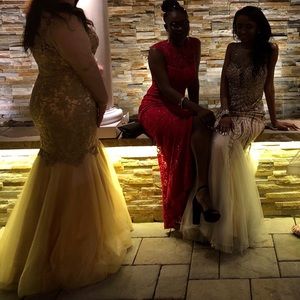 I bought this prom dress at Atiana’s boutique for my 2018 senior prom. It’s a size 18, gold with mesh sleeves, mermaid style, it truly made me feel beautiful.