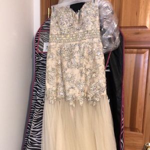 Champagne color prom dress.