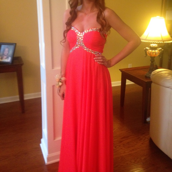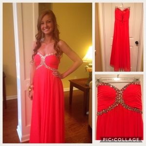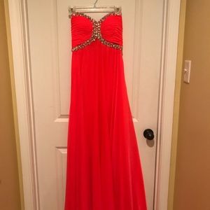 Coral Color - Crystals on bodice. Back has corset back. Never altered