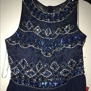 Navy blue prom dress with glitter embellishments