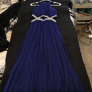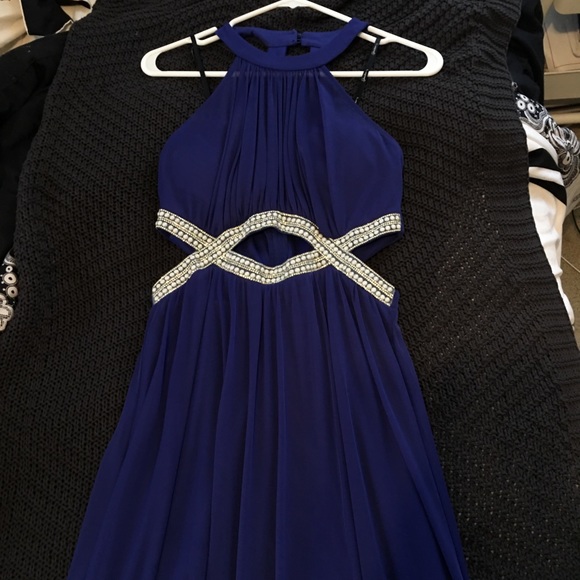 Blue prom dress. Worn once, perfect condition. Beaded detailing with a sheer overlay. Back has strap detailing and there is a infinity cutout.
