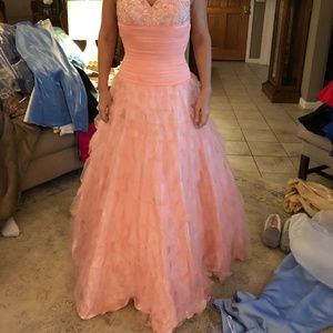 Light pink prom dress with tufted bodice and beaded bust. Worn once and in great condition!